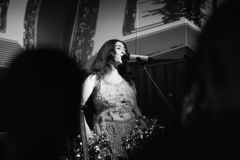 Earlier in the night, Caroline Kingsbury got the crowd warmed up. A reincarnation of your favorite 80s queer icon, Kingsbury is an artist I can’t recommend enough – a sentiment that many people around me shared after her set. Complete with bright blue tights, discoball earrings, and bursting charisma and stage presence, Kingsbury’s opening set was over too fast. Highlights included her top songs “Kissing Someone Else,” and “Take My Phone Away,” and a rousing chant of “Trans rights!”